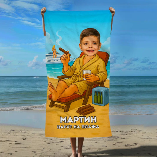 Готиният Сърфист - Детска Хавлия с Лицето Им