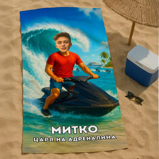 Царя на Адреналина - Плажна Хавлия с Лицето ти