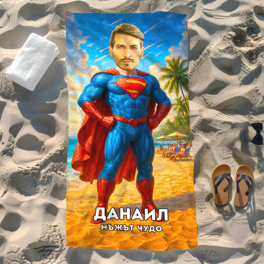 НамалениеSuperman - Плажна Хавлия с Лицето ти