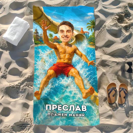 Водна Пързалка - Плажна Хавлия с Лицето ти
