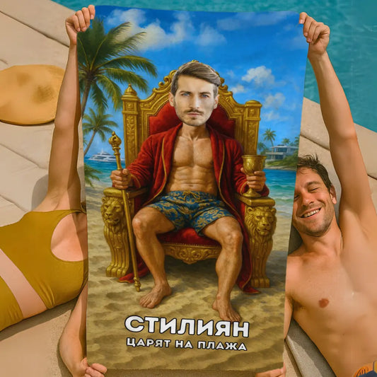 Царят на Плажа - Плажна Хавлия с Лицето ти