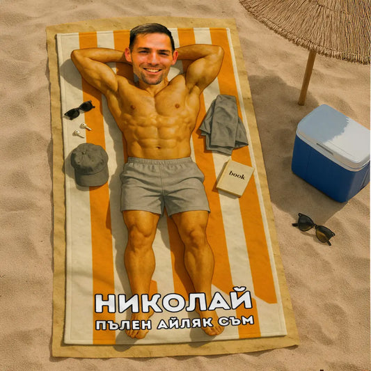 Mr. Пълен Айляк - Плажна Хавлия с Лицето ти