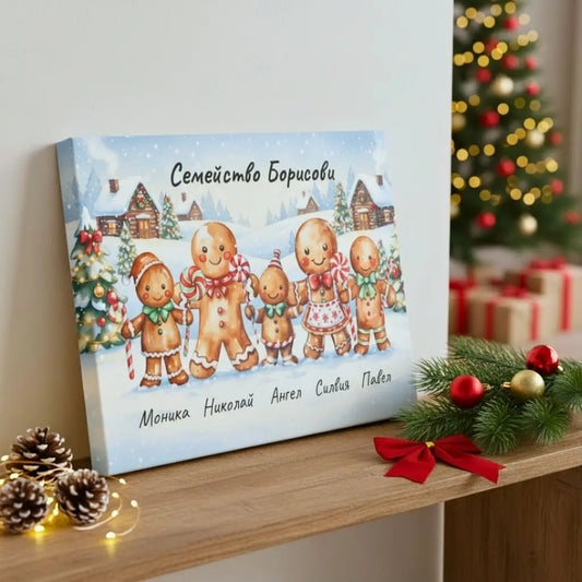 Джинждифилени Човечета - Сладка Коледна Картина с 2-6 Имена