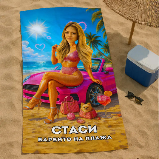 Кралицата на Плажа 2 - Плажна Хавлия с Лицето ти