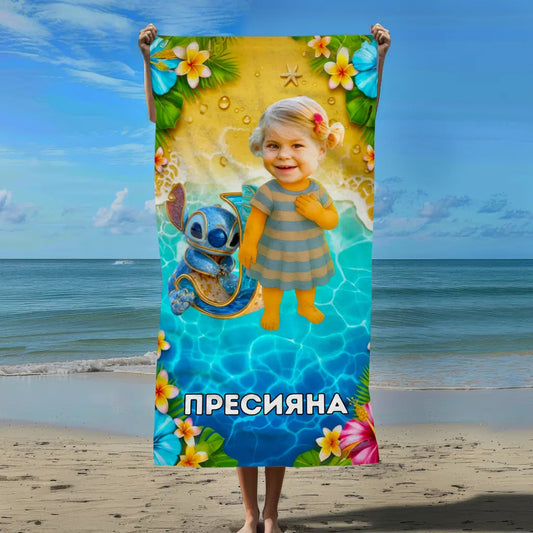 Мис Айляк - Плажна Хавлия с Твоя Снимка и Име