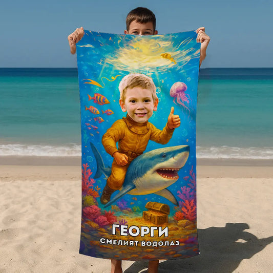 Готиният Сърфист - Плажна Хавлия с Лицето ти
