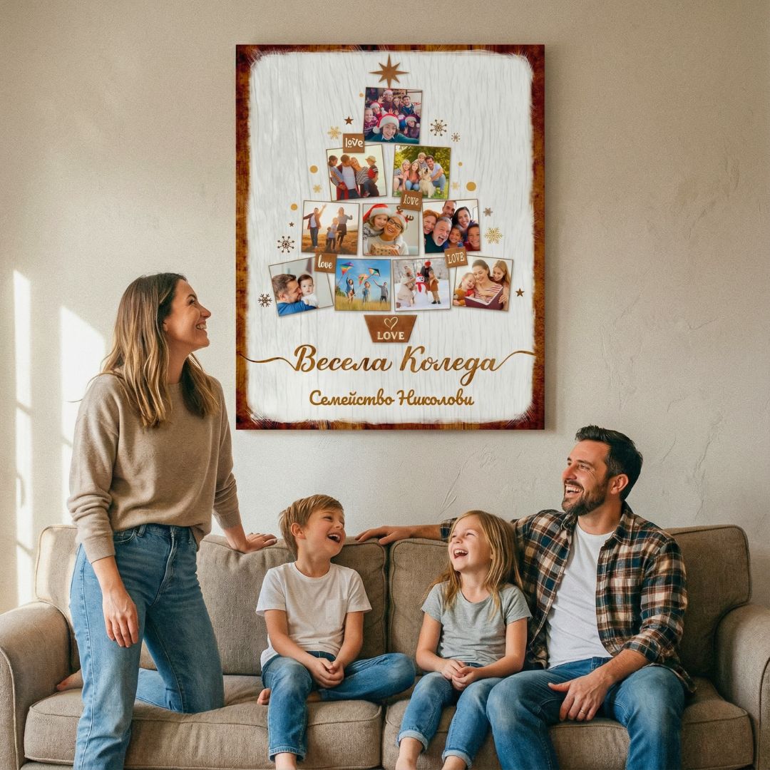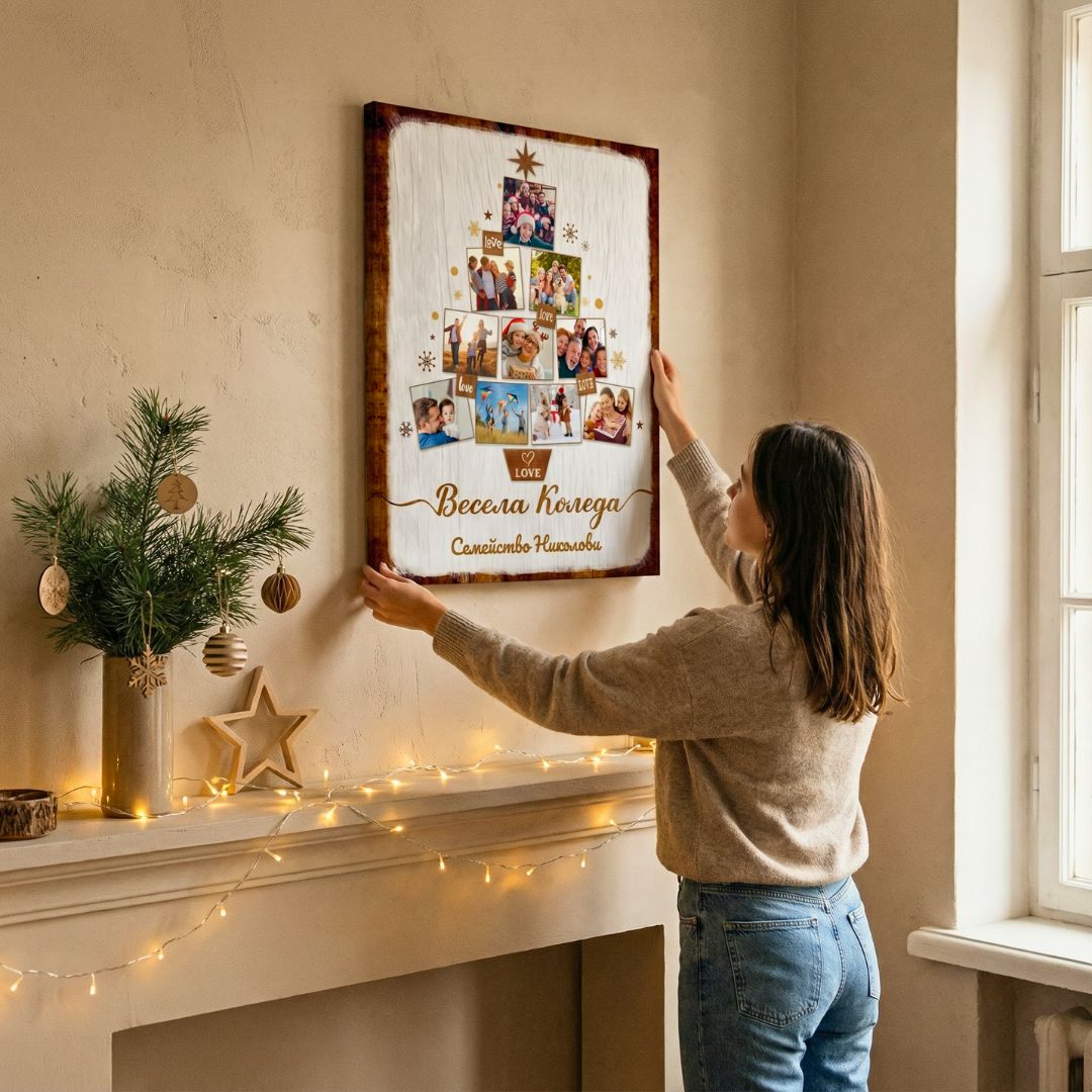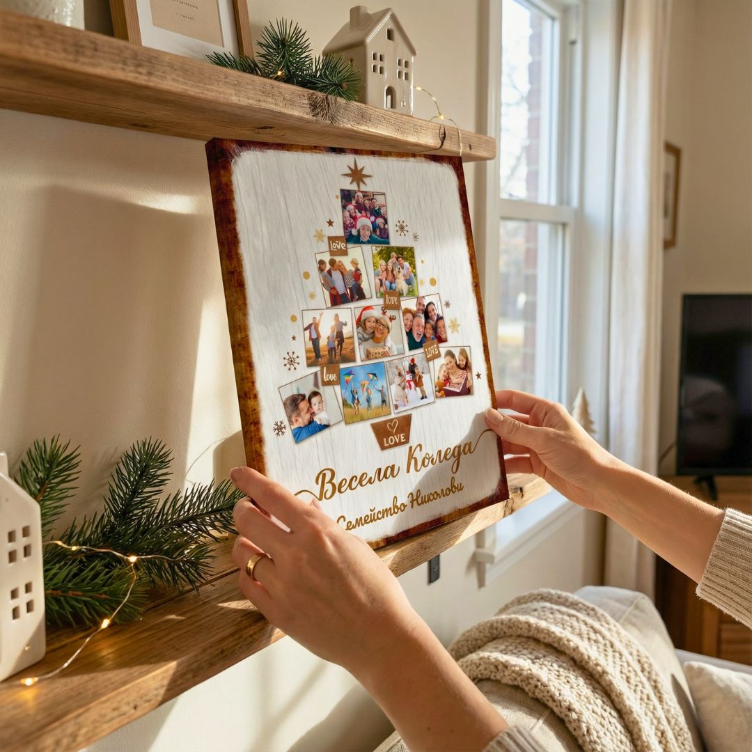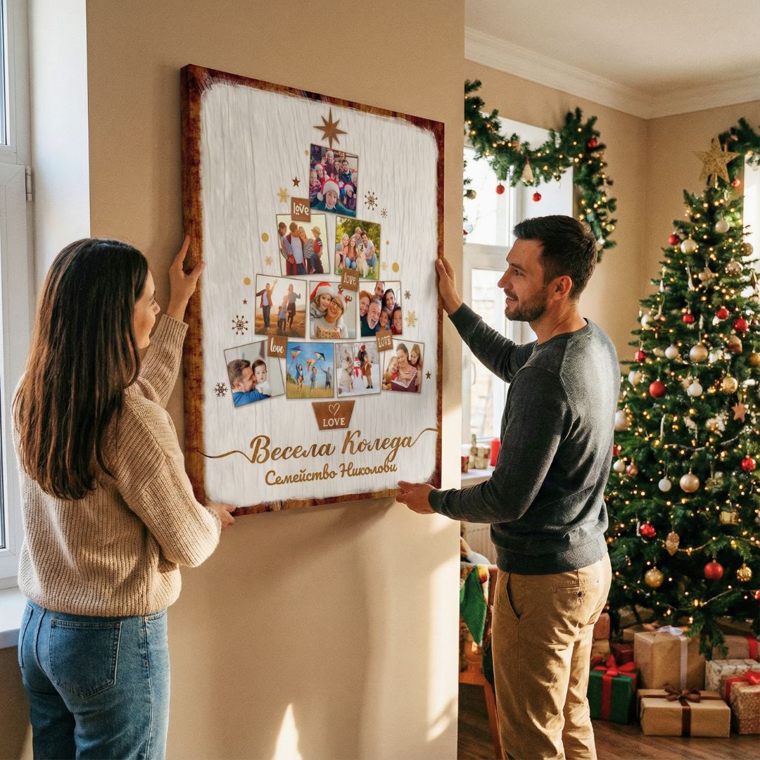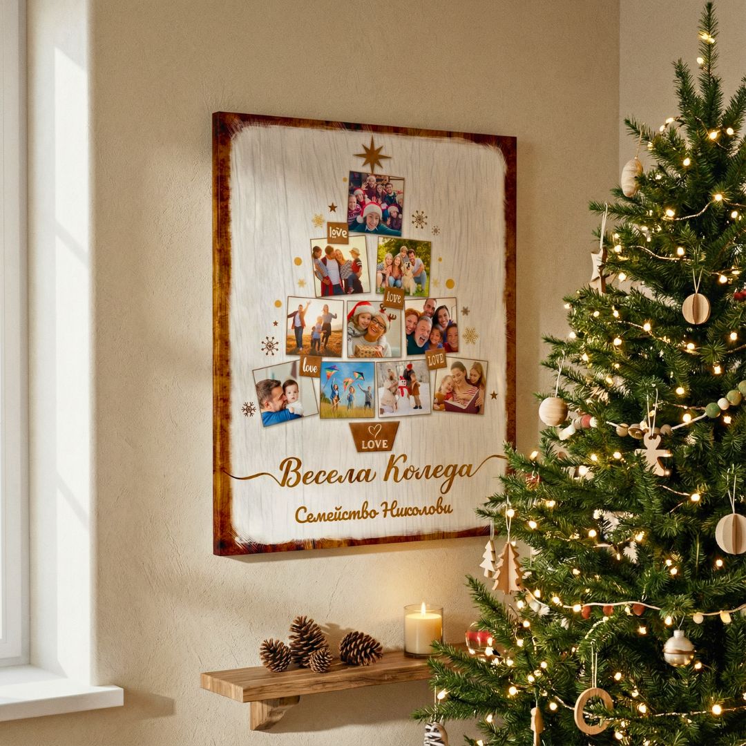 Картина "Елха с 10 Ваши Снимки и Текст | Коледна Картина"