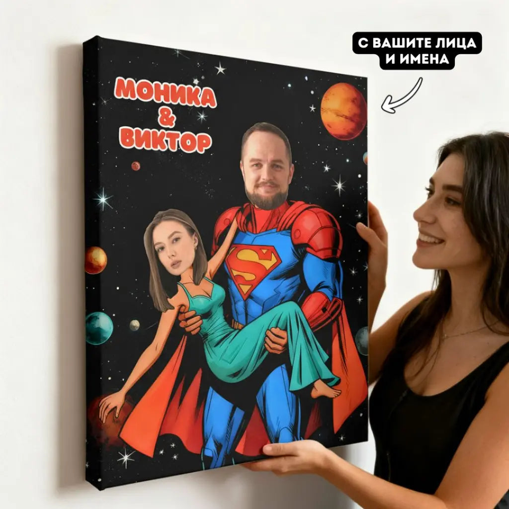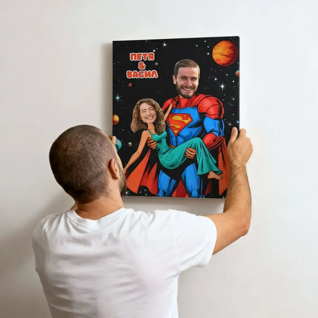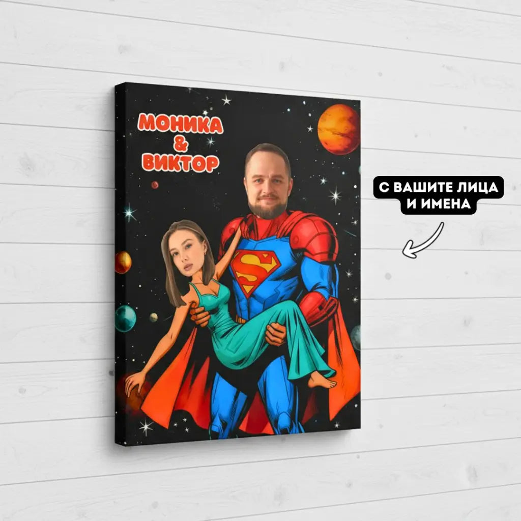 Картина "Супермен и Неговата Героиня – Картина с Вашите Лица"