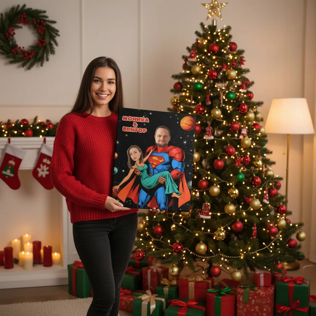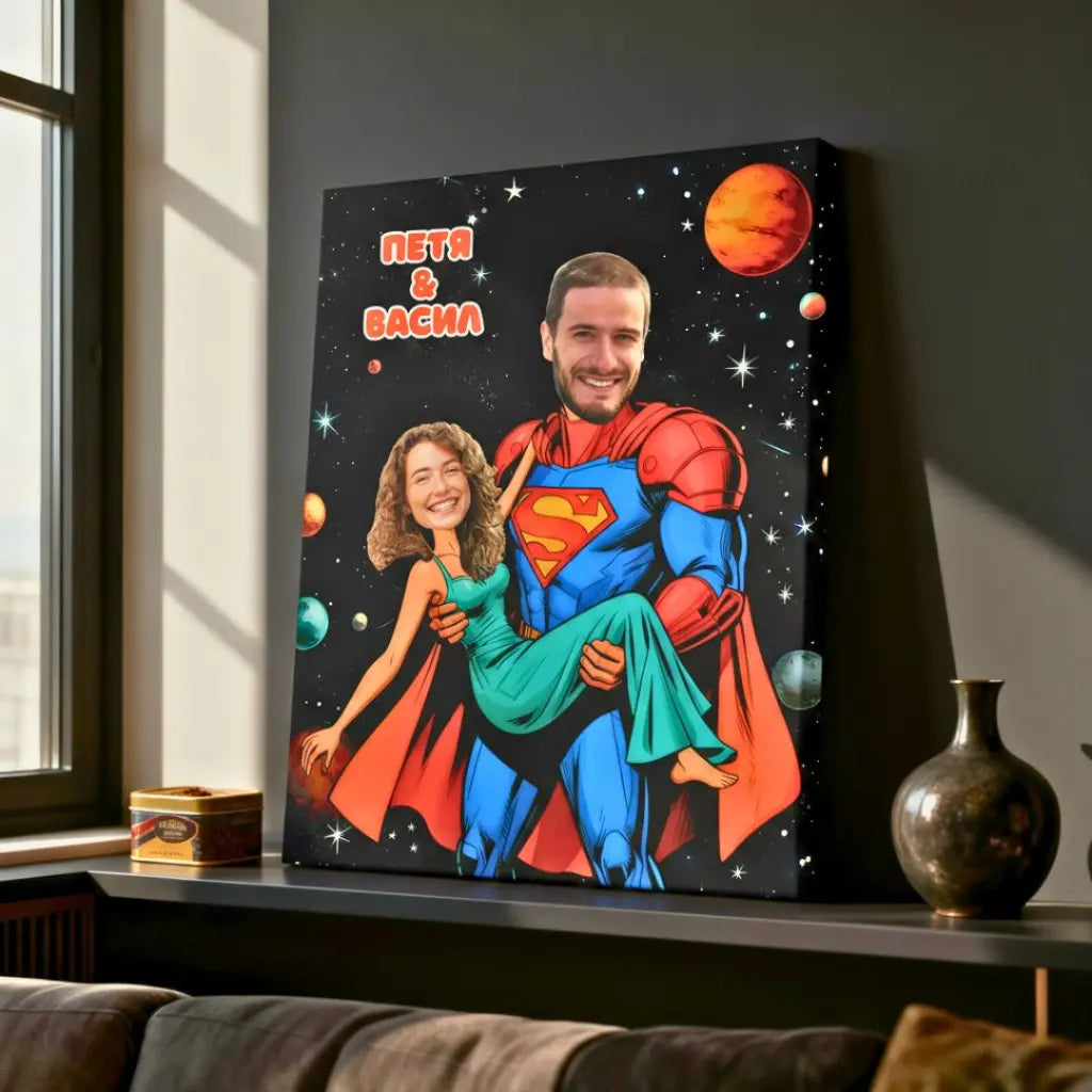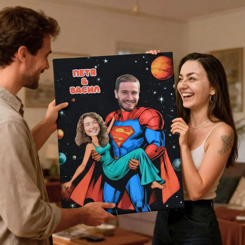 Картина "Супермен и Неговата Героиня – Картина с Вашите Лица"