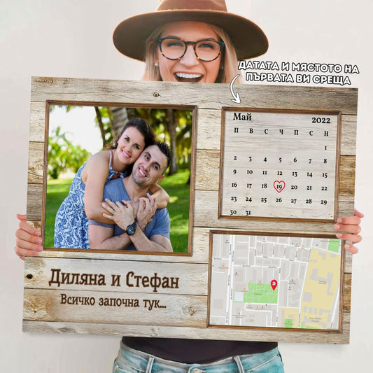 Картина „Нашето Начало“ С Вашата Дата, Място и Снимка